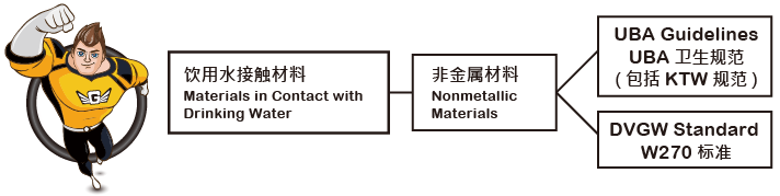 DVGW的范圍包括供水和供氣有關(guān)的所有產(chǎn)品,W-270為其中一項(xiàng)標(biāo)準(zhǔn) ,主要是與飲用水接觸的產(chǎn)品在微生物學(xué)方面的要求。
