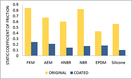 GMORS的先進(jìn)鐵氟龍涂層制程為裝配線提供了諸多優(yōu)勢(shì),為您提供合格可靠的密封涂層。無論是哪種橡膠材料,使用鐵氟龍涂層,靜摩擦系數(shù)都可以降低70%以上,如圖1所示 。